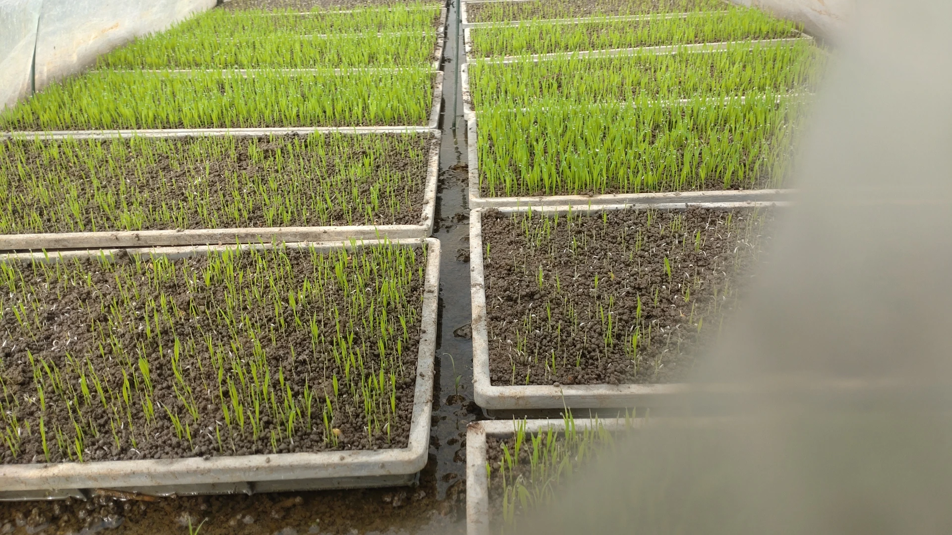 じーじとばあばの家では、5月の連休頃が種まきの時期。数日間、育苗箱に種もみを蒔いたら、むしろを掛けて芽が出た後に田んぼに移されます。そして、田んぼではトンネルテントで育てられ、田植えが出来るようになるまで、その場所で育成されます
